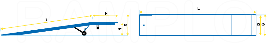 The RL-MRLX mobile ramps are part of the extensive RAMPLO ramp range. They allow trucks and containers to be loaded/unloaded from ground level without any labor costs. RAMPLO ramps are manufactured from a robust, steel, welded construction.The ramp is equipped with a galvanised anti-slip grid, which ensures safe passage across the ramp in all weather conditions. It is also durable and does not require quick replacement when the ramp is in daily use.