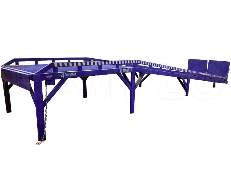 This loading ramp is used to align the position of a forklift before driving inside the truck or a warehouse