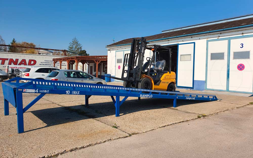 Om het grondniveau en het vloerniveau van uw magazijn met elkaar te verbinden, vervaardigen wij vaste laadramp RAMPLO-FX, die alleen bestaat uit een hellend deel en een klein verbindingsbrugje.